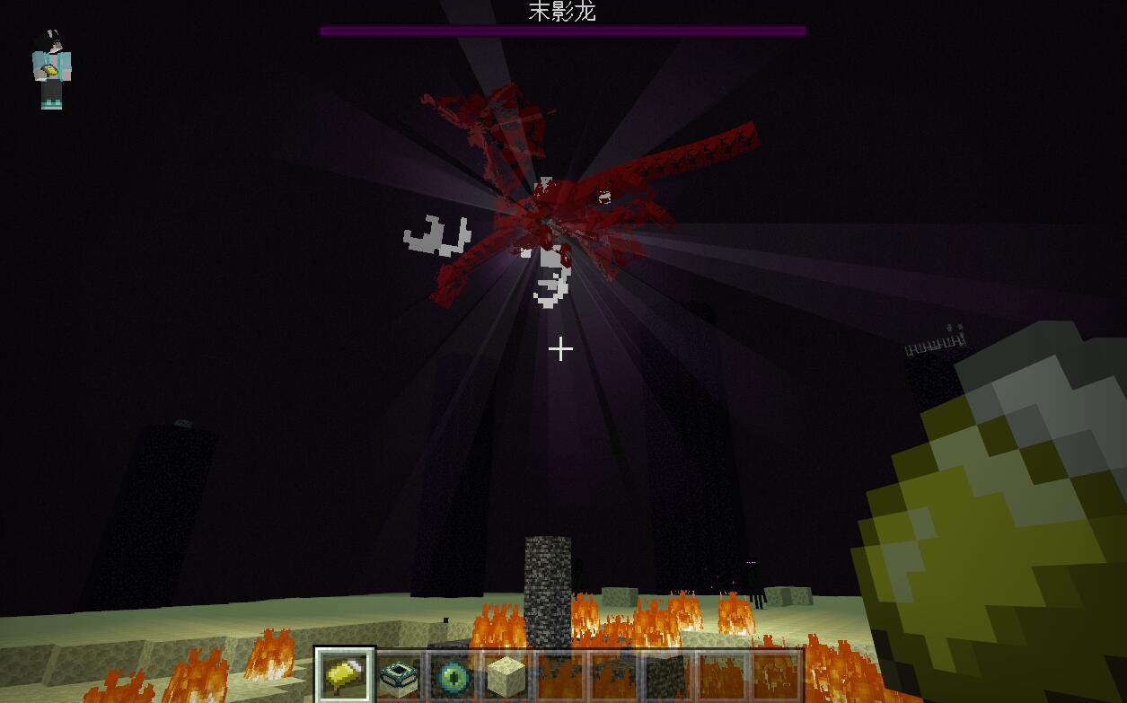 1,首先我們先要前往末影之地中間的基岩台處,在這里放一個床。