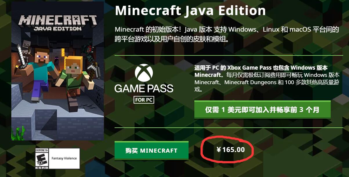 2,然後就會發現,我的世界PC版價格為165元人民幣。