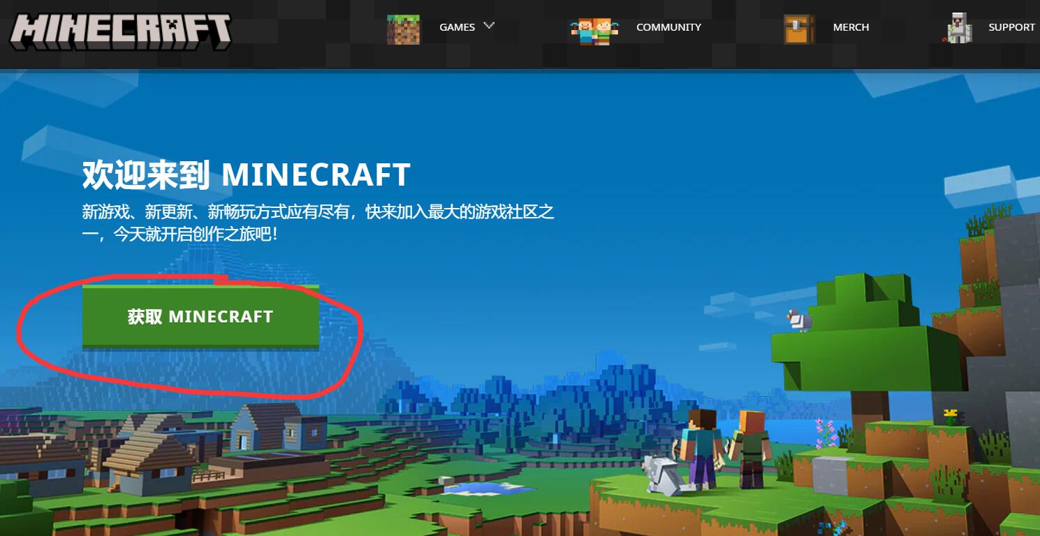 1,首先我們進入我的世界官網,點擊獲取遊戲。
