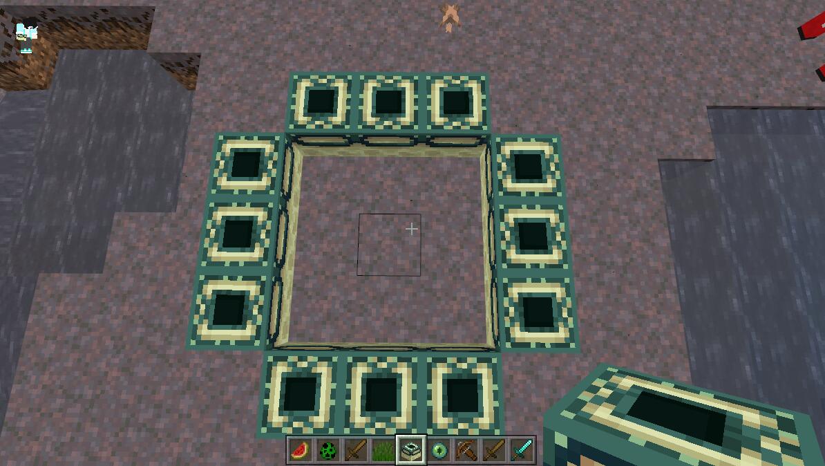 1,首先我們需要按照如圖所示擺放末地傳送門,注意傳送門方向要準確。