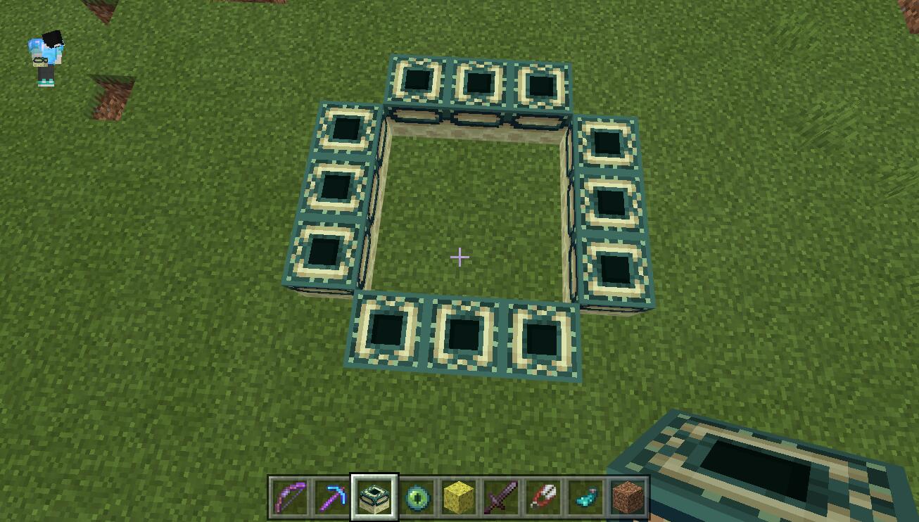 2,接著我們需要按住如圖所示進行擺放末地傳送門,需要注意的是,末地傳送門必須全部都朝向中間,不然激活不了。