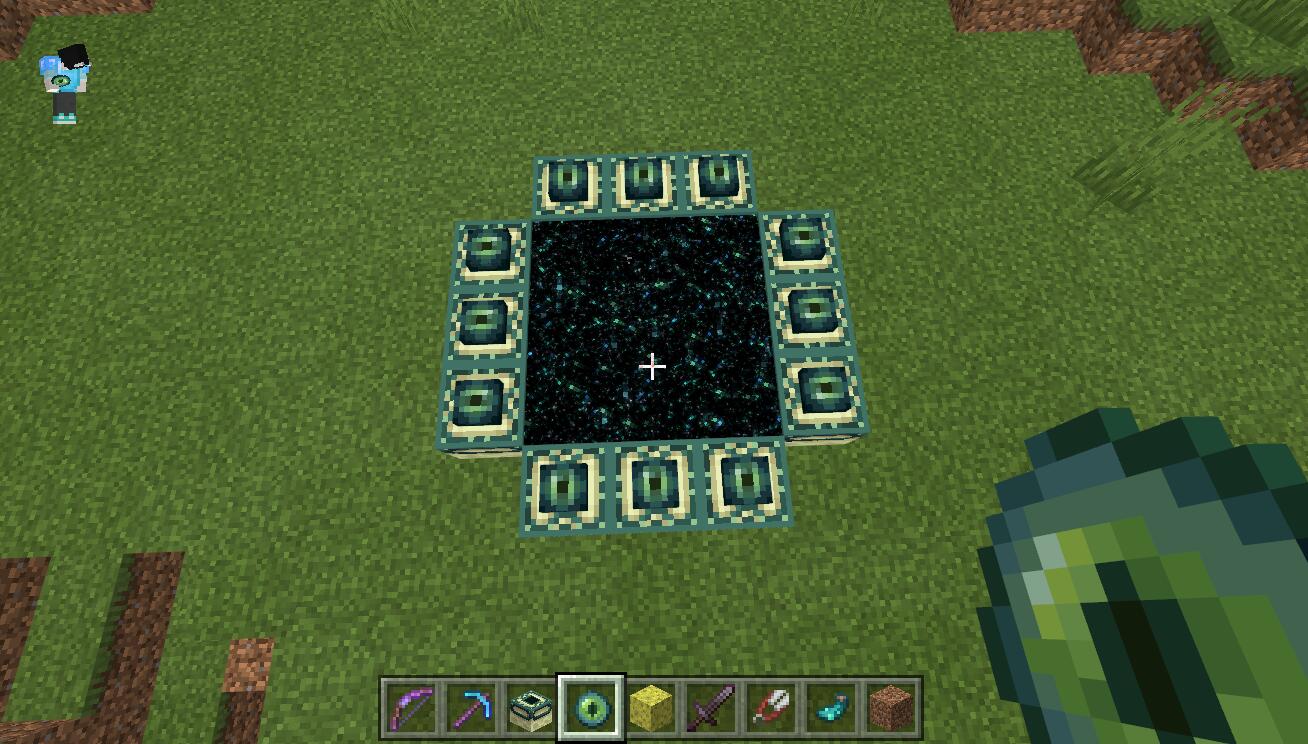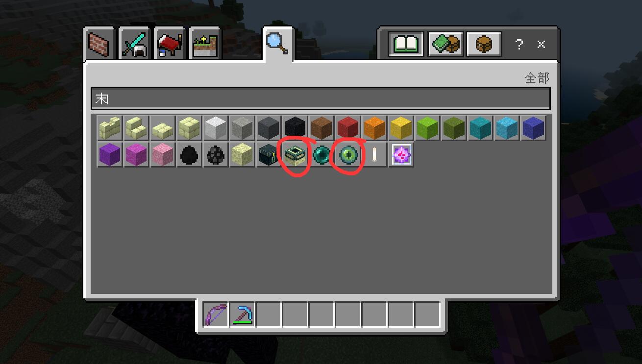 1,首先我們需要先開啟創造模式,然後拿取一組末地傳送門和一組末影之眼。