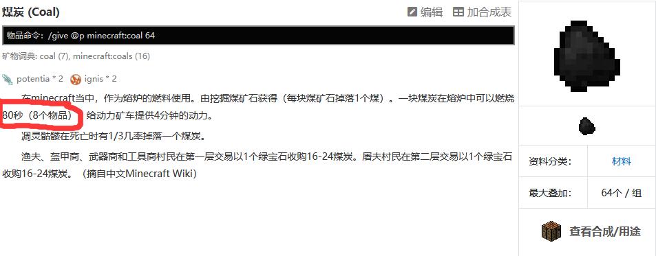 2,然後就可以在界面左側發現,煤炭的燃燒時間為80秒了。