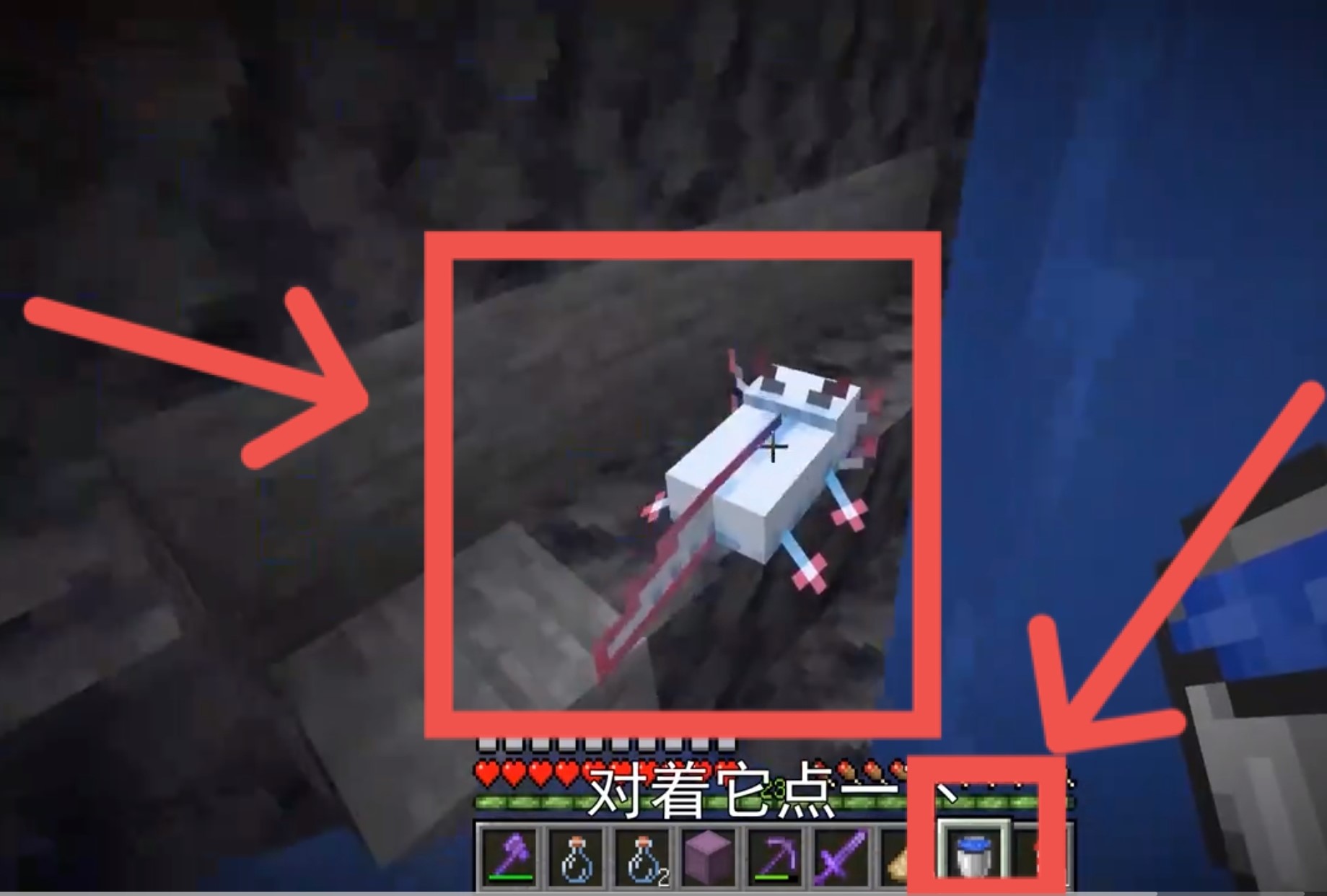 補充:找到的美西螈需要馴服,才能屬於自己,馴服如下:
