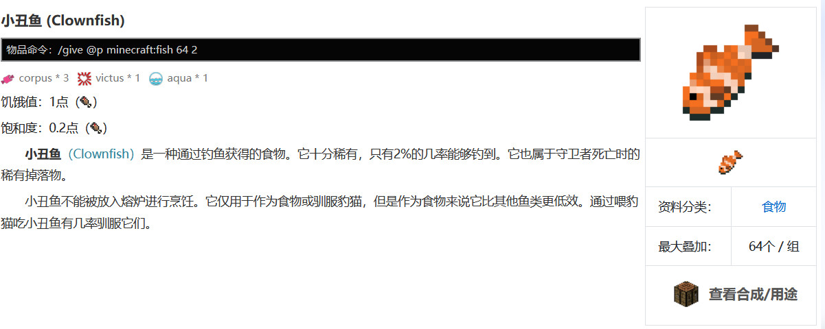 首頁 我的世界 問答 我的世界小丑魚有什麼作用? 2022-09-02 小丑魚的作用是作為食物或者用來馴服豹貓,一般是用來馴服豹貓的,因為小丑魚很難得到,並且作為食物它只能增加一點飽食度,這樣是非常不劃算的,在守衛者死亡後可能掉落小丑魚。