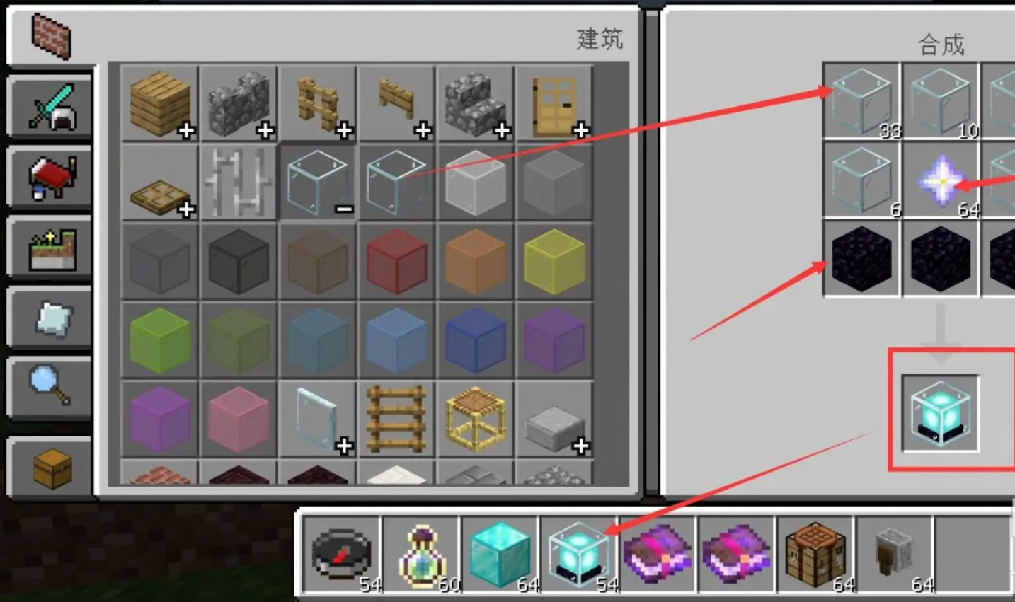 首頁 我的世界 問答 我的世界mc信標怎麼合成? 2022-09-02 1、進入到遊戲界面,然後找到工作台,點擊進入工作台工作面板。2、首先我們需要合成信標。需要五塊玻璃、一顆下界之心、三個黑曜石。然後我們根據下圖的擺放位置擺放好我們的材料,就可以合成信標。