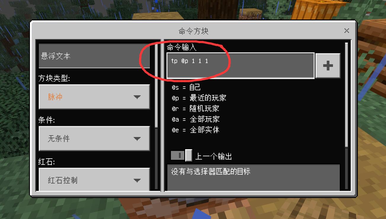 首頁 我的世界 問答 我的世界怎麼用命令方塊傳送位置? 2022-09-02 在命令方塊里輸入/tp @p x y z,然後前面裝個踏板激活命令方塊即可。1,首先我們需要在命令方塊里輸入這條指令。2,然後在命令方塊前面裝個踏板。3,最後踩上踏板,就可以用命令方塊傳送位置了。