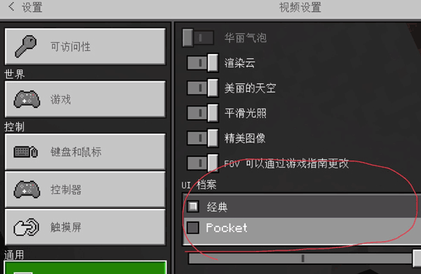 2、在視頻設置界面中一直向下滑動即可看到「UI檔案「的設置選項,將UI檔案設置為」經典「。