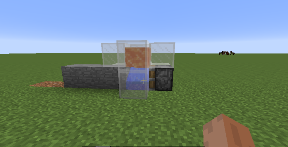 第二行:[空氣][紅石][方塊][紅石火把(放在下面的方塊)][方塊][紅石]
