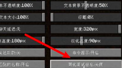 首頁 我的世界 問答 mc電腦版怎麼看坐標? 2022-09-04 1.進入遊戲,按下esc打開遊戲菜單,點擊選項。2.點擊窗口上的聊天設置選項。3.點擊簡化調試信息按鈕,選擇關閉選項。4.在遊戲中按下F3鍵打開調試信息,在信息中的XYZ信息就是坐標了。