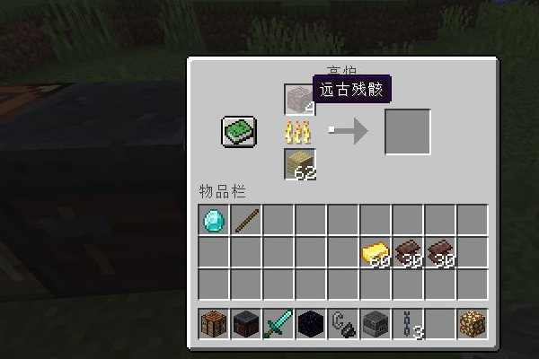 2、在高爐中將遠古殘骸燒成下界合金碎片,然後取出。