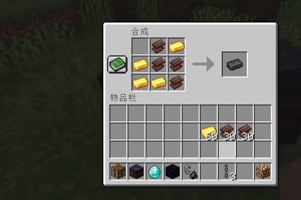 3、在工作台中將下界合金碎片和金錠合成下界合金錠,對於擺放沒有要求。