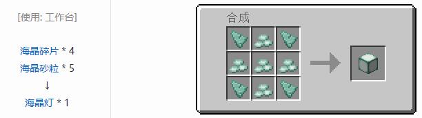 首頁 我的世界 問答 我的世界海晶沙粒有什麼用? 2022-09-04 海晶沙粒可以用來合成海晶燈。1,首先我們需要找到一個工作台,點擊滑鼠右鍵進入工作台。2,然後按照下面的配方就可以使用海晶沙粒合成海晶燈了。