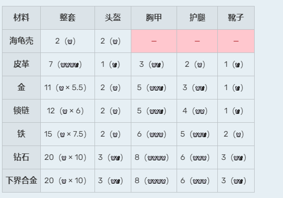 首頁 我的世界 問答 我的世界盔甲防禦力如何計算? 2022-09-04 不同盔甲防禦力也不同,他們的排序為鑽石(20)>鐵(15)>鎖鏈(12)>金(11)>皮革(7)>無護甲(0)穿上了個裝備,護甲值的測量和監控基於一排灰白色的盔甲圖標,每個盔甲圖標代表護甲值,而不完整的半個盔甲圖標代表1甲值。
