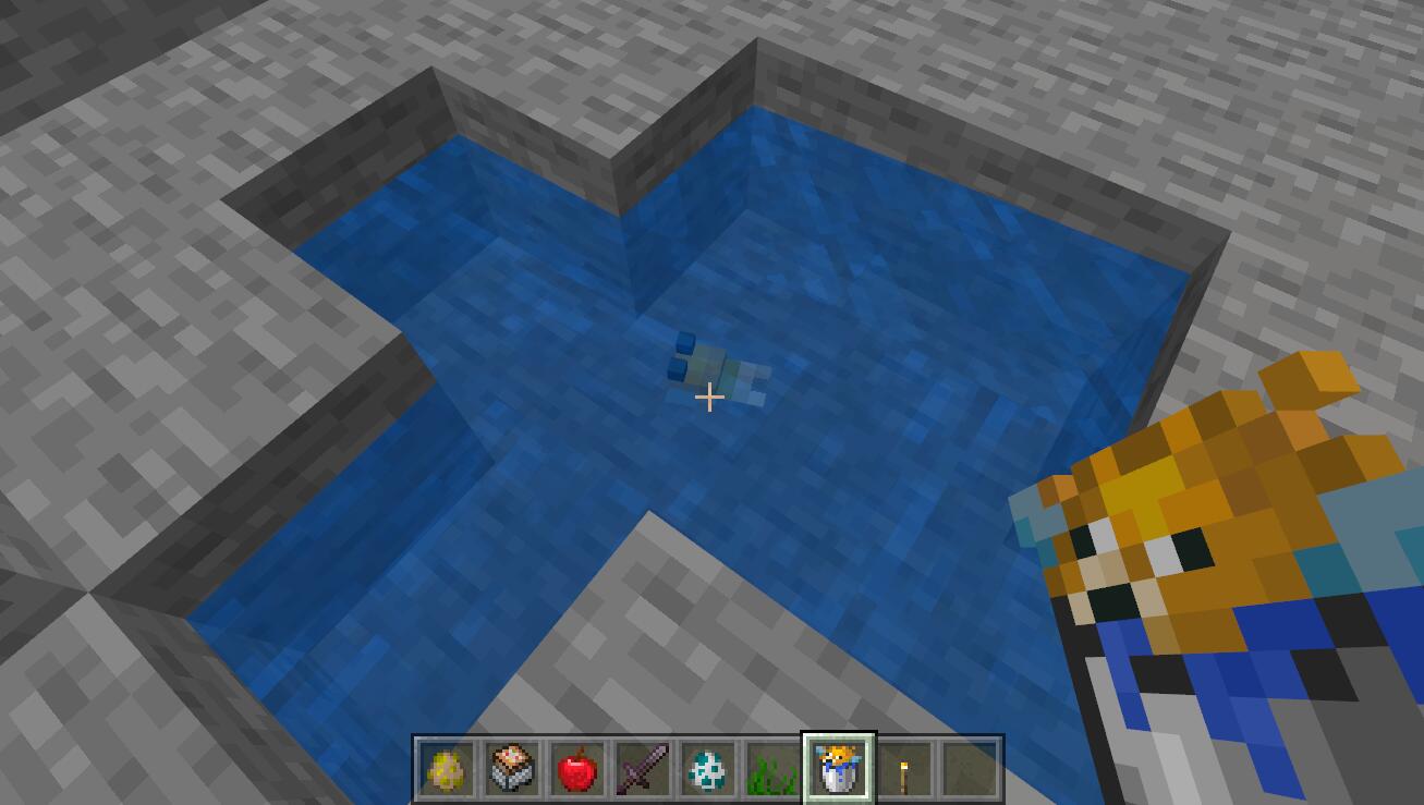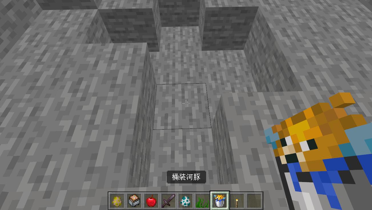 1,首先我們手上拿著桶裝河豚,接著我們右鍵點擊地面。