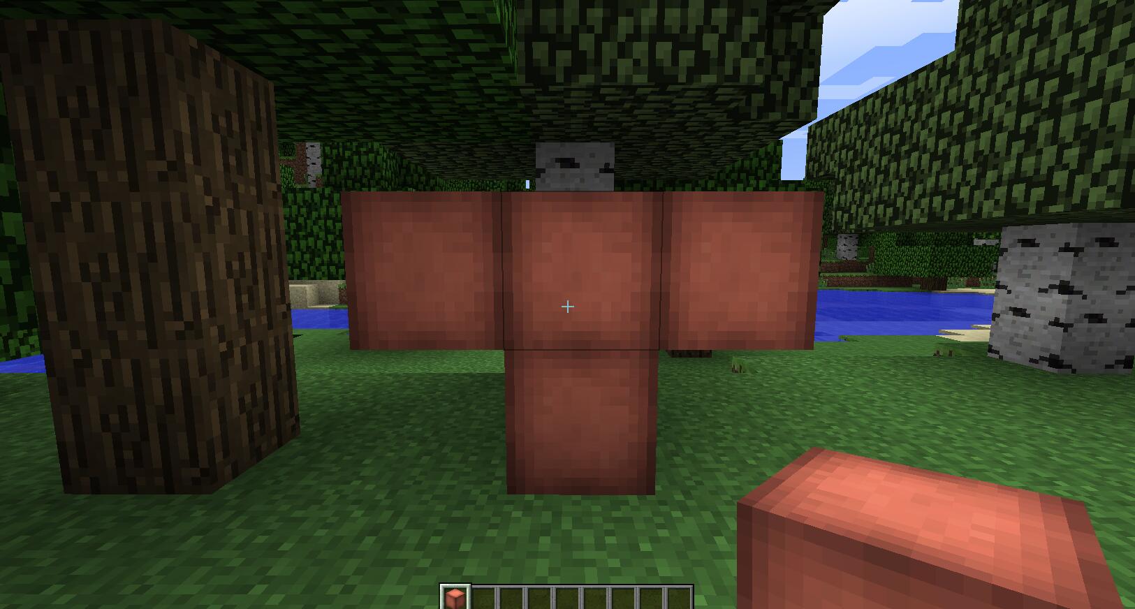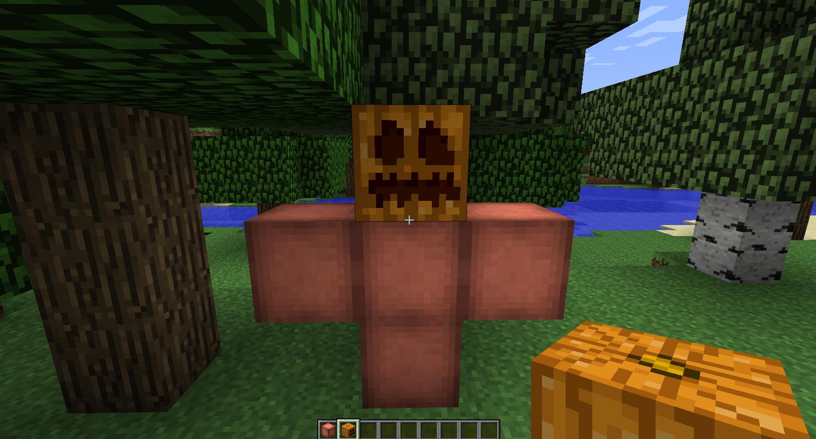 像製作鐵傀儡一樣製作銅傀儡即可,需要四個銅塊和一個南瓜頭,但前提是需要裝上銅傀儡的MOD才行、