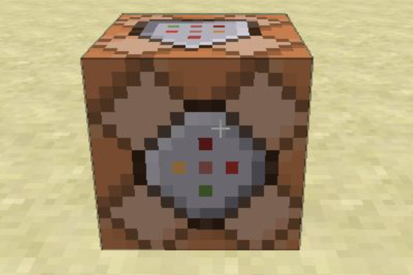 7、在命令方塊前面放上按鈕和紅石粉來啟動命令方塊。
